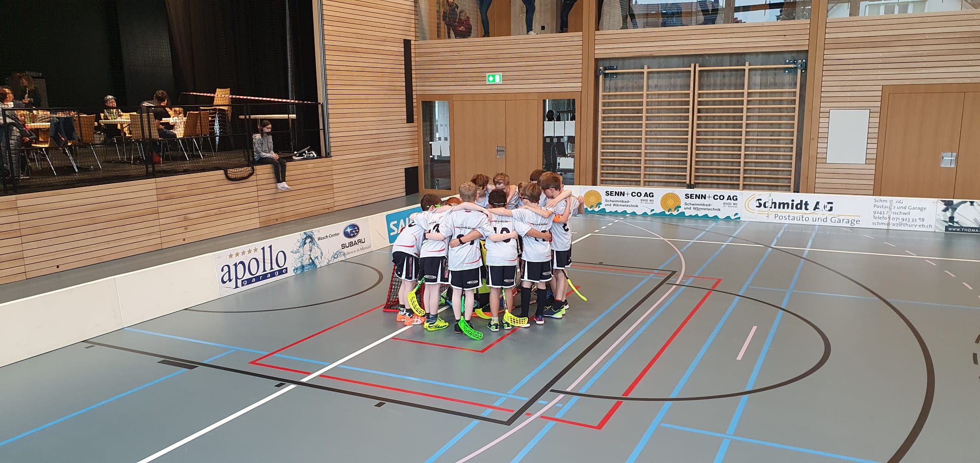 Am Nachmittag waren dann die Kleinsten dran. Hier nahmen insgesamt fünf Teams teil (UHC Appenzell, HFC Feldkirch Knights, Flying Penguins Niederwil, White Sharks Nesslau und wir).