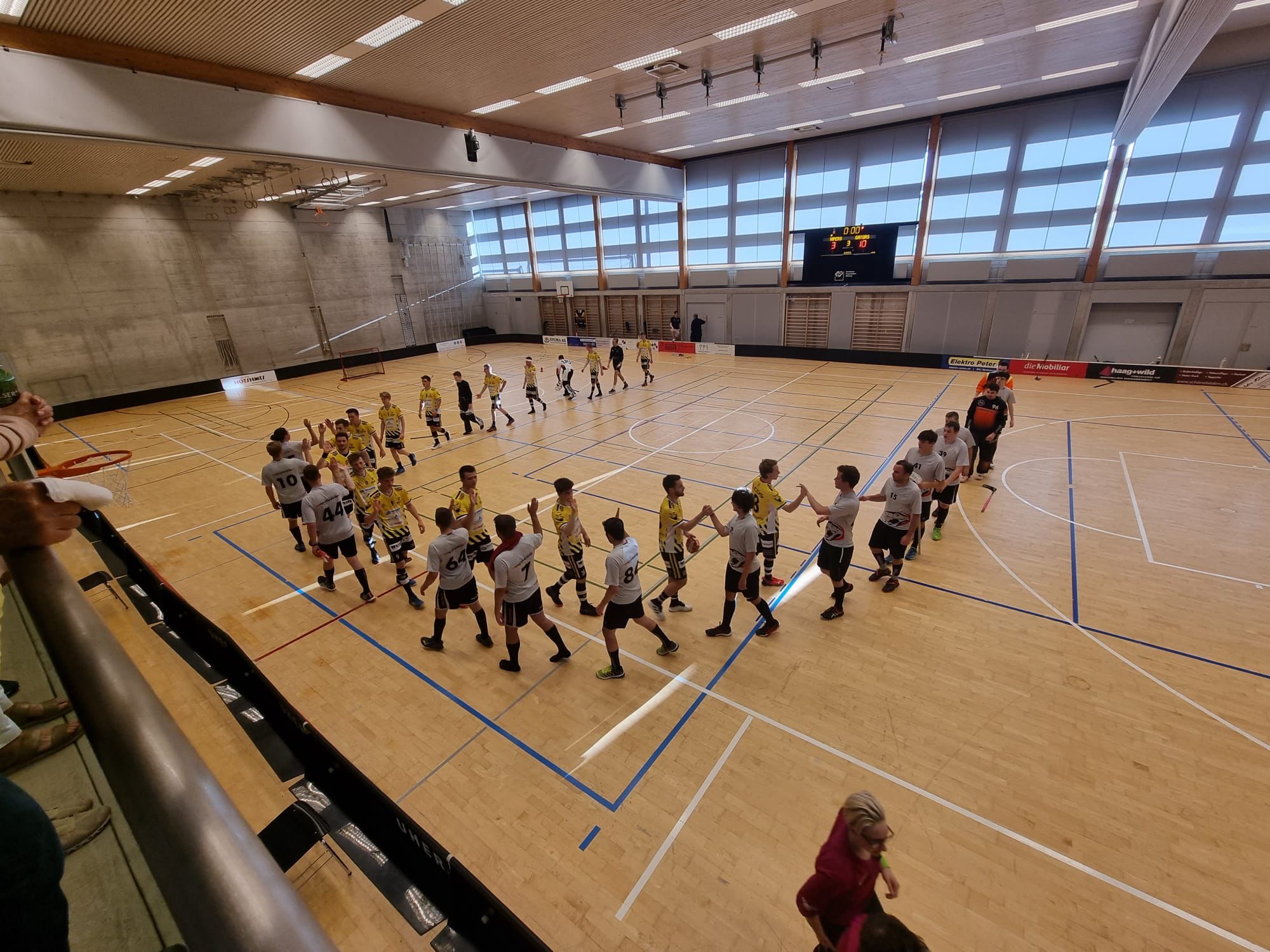 Eine Ausnahme bildete ein Vorstoss von N. Brändle, welcher wenige Meter nach der Mittellinie einfach abzog und herrlich zum 3:4 traf. Dieses Resultat zeigte die Match Uhr auch nach 40 Minuten an.
