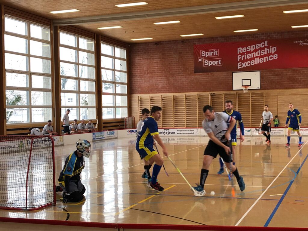 Schon das Einwärmen sah bei allen konzentrierter aus, was für das erste Duell der Rückrunde Verheissungsvolles versprach. Der Gegner dafür war altbekannt und mit dem UHC Schaan auch jeweils ein starker Widersacher. Die Spiele waren immer sehr umkämpft und gingen meist knapp aus. Daher war eine konzentrierte Leistung das A und O, wollte man doch noch zu Punkten kommen. Der Start verlief gut, beide Seiten konnten offensive Akzente setzen. So verwunderte es nicht, dass auch bald das erste Tor fiel. Unglücklicherweise auf der falschen Seite, 0:1 aus Sicht der Vipers. Nun schien aber das Mass voll zu sein und irgendwie wurde im Team ein Schalter umgelegt, denn es folgte eine der besten, wenn nicht die beste Vipers-Halbzeit seit dieses Team zusammenspielt. Aber der Reihe nach, soll ja jeder seine Erwähnung erhalten. Das Score für die Vipers eröffnete M. Hasler und zwar gleich doppelt. Danach trat wieder Glühwein-Philosoph M. Stadler auf die Bühne und erhöhte auf 3:1. Diese Führung baute dann M. Gämperli nochmals um einen Zähler aus. Komfortabel liest sich das Ganze, es war aber alles andere als einfach. Das Spiel blieb, wie immer gegen die Schaaner, körperbetont und so entschied der Schiri (übrigens der gleiche wie im ersten Spiel) wieder auf 2 Minuten gegen die Vipers und schickt M. Hasler zur Abkühlung raus. Dies nutzen die Mannen aus dem Ländle für Resultatkosmetik. Das dies aber nur ein kleiner Klecks im Reinheft der Vipers war, demonstrierte die Offensive gleich selber. Eine wunderschöne Kombination wie aus dem Lehrbuch, M. Hasler auf J. Brändle und dann der Querpass zu M. Ammann und schon waren es wieder 3 Längen Vorsprung. Nun folgte die Kür der ersten Hälfte, denn es spielten nur noch die Vipers. Zuerst traf J. Lüthi auf Assist von R. Zimmermann zum 7:2, bevor der Auftritt von D. Alpert folgte. Der laufstarke Alpert verfolgte seinen Gegenspieler mit so penetranter und akribischer Verteidigungsarbeit, das dieser ihn «en huere Fechter» nannte. Der angesprochene Fechter hatte sich aber den Ball erfochten, tanzte kurzerhand über das Spielfeld und stach vorne zu. Fand dann der besagte Gegenspieler übrigens weniger lustig, spätestens dann als er von mir noch darauf hingewiesen wurde, wer gerade getroffen hatte. «En garde» hiess es dann aber sofort wieder, denn auch Langschläfer J. Brändle wollte sich noch auf der Torschützenliste eintragen, bevor der Pausengong erklang. Gesagt, getan und so gingen die Vipers mit einer beeindruckenden 8:2 Führung in die Pause.