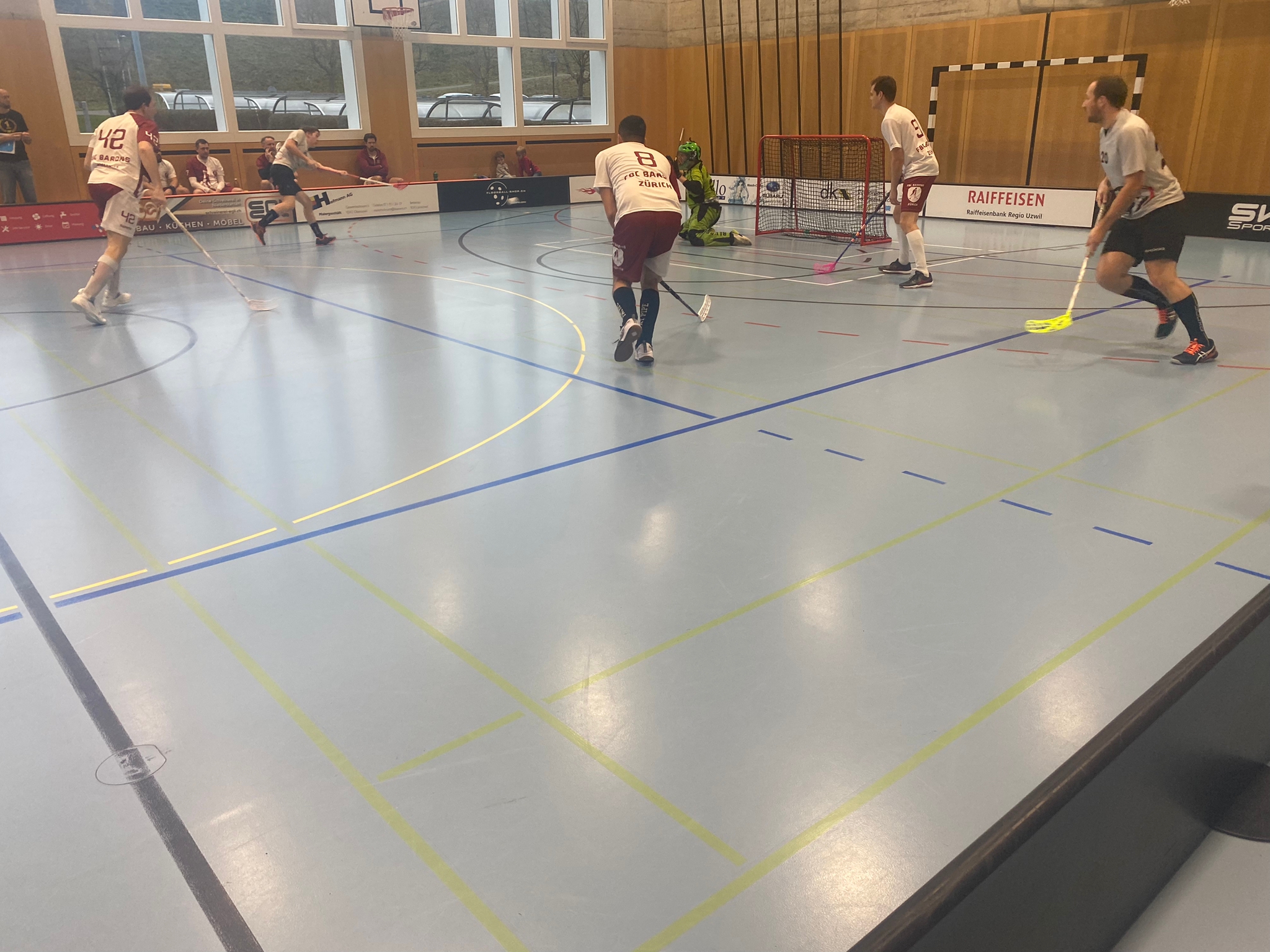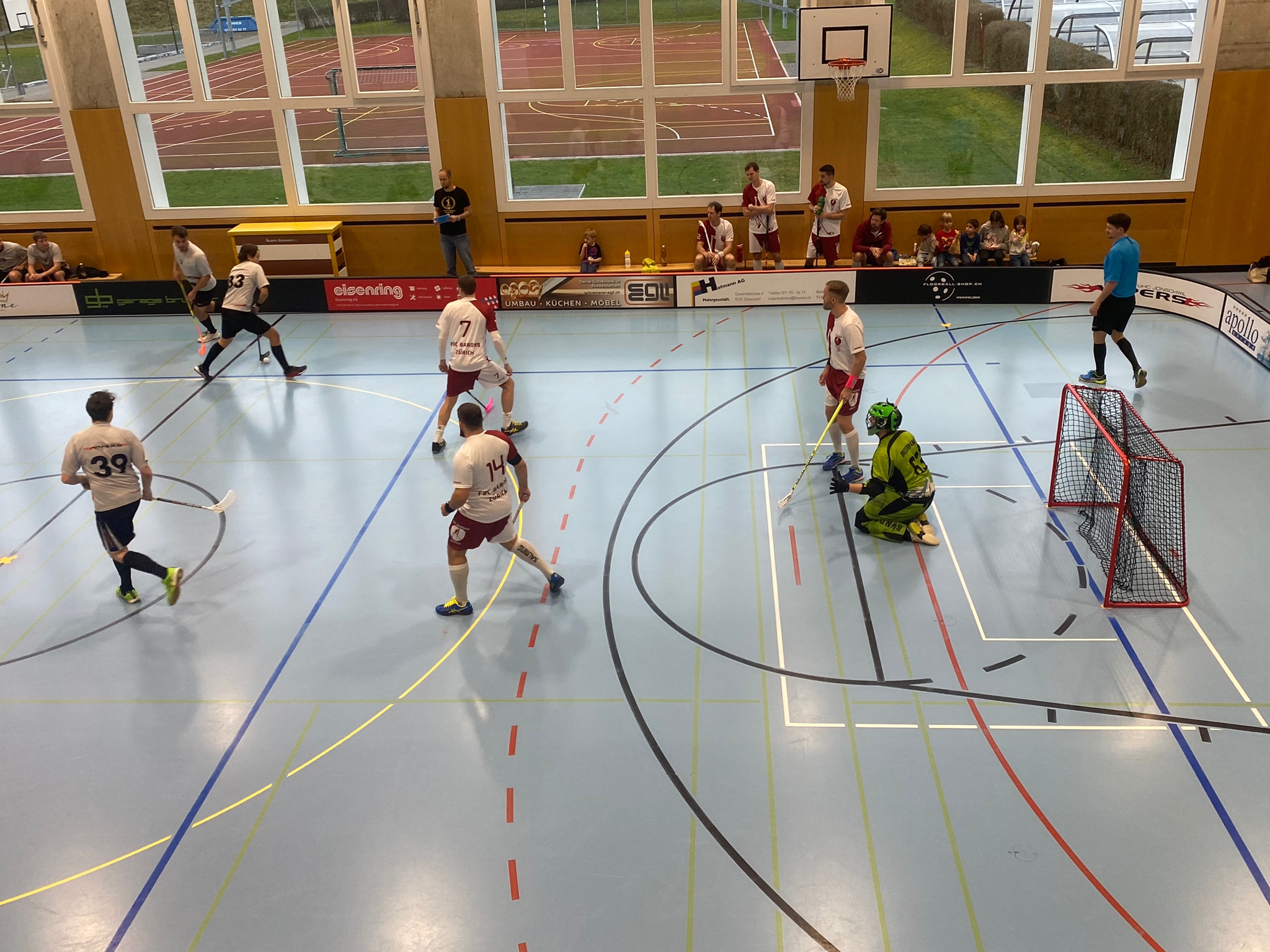 Nach einem zügigen Aufwärmen und dem Eintreffen aller Fans konnte das erste Spiel beginnen. Die Vipers konnten gut in die erste Hälfte starten. Sie waren sofort bereit sich im Spiel zu behaupten. Von dieser Energie spürte man beim Gegner weniger. Sie zeigten wenig Einsatz und spielten ein langsames Unihockey. Trotzdem gelang es ihnen den ersten Treffer zu erzielen. Lange konnten sie sich damit nicht behaupten, denn die Vipers konnten mit einem gut gezielten Schuss von M. Bösch die Partie wieder ausgleichen. Die Vipers hielten den Druck hoch und behaupteten das Spiel für sich. 2:1! Diesmal gab der vorherige Torschütze einen Assist für J. Huber. Leider konnten die Barons schnell wieder ausgleichen. Jonschwil bestimmte aber das Spiel. Das merkte man nun auch. Es fielen 2 schnelle Treffer für die Vipers. Wiederum M. Bösch und unser Topscorer D. Haag, waren erfolgreich. Die Gegner blieben aber hartnäckig und kamen immer wieder an die Vipers heran. Sie erzielten das 3:4. Das gefiel unserem Jungstar J. Lüthi gar nicht und er versenkte den Ball von der Mittellinie zum 3:5. Diese Führung hielt sich jedoch nicht lange, da die Barons auf 5:5 effektiv ausgleichen konnten. Vor der Pause konnte J. Lüthi jedoch mit einem weiteren Schuss den Torhüter bezwingen. Die Vipers gingen mit einer Führung von einem Tor in die Pause – 6:5.