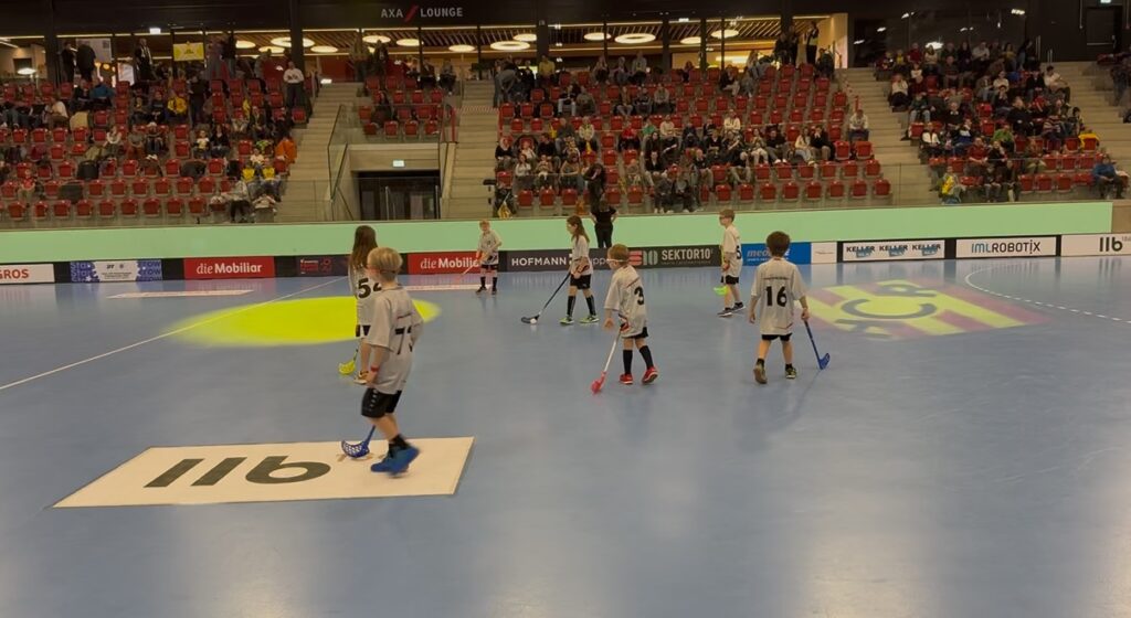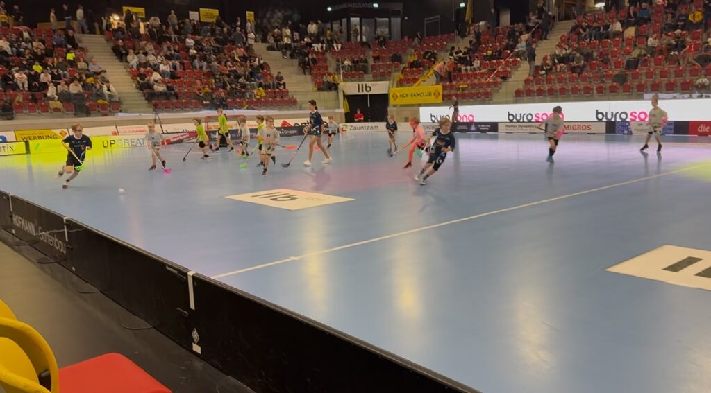 Das besondere an diesem Event, neben dem NLA-Spiel, ist die Möglichkeit, dass die jüngsten Unihockeyaner und Unihockeyanerinnen mit den grossen Stars der beiden Teams einlaufen dürfen. So begleiteten unsere Jung-Vipers jeweils einen Spieler des Gast-Teams aus St. Gallen aufs Feld. Dem aber noch nicht genug, durften die Kids dann in der ersten Pause auch noch selber in den Einsatz. Auf dem grossen Feld wird dann gegen eine zweite Mannschaft, welche an diesem Tag zu Gast ist, ein kleines Freundschaftsspiel ausgetragen. Hier standen den Vipers die Kids des UHC Wyland gegenüber. Natürlich stand aber auch hier der Spass im Vordergrund und das Gefühl, einmal auf dem Feld der Nationalliga A spielen zu dürfen.